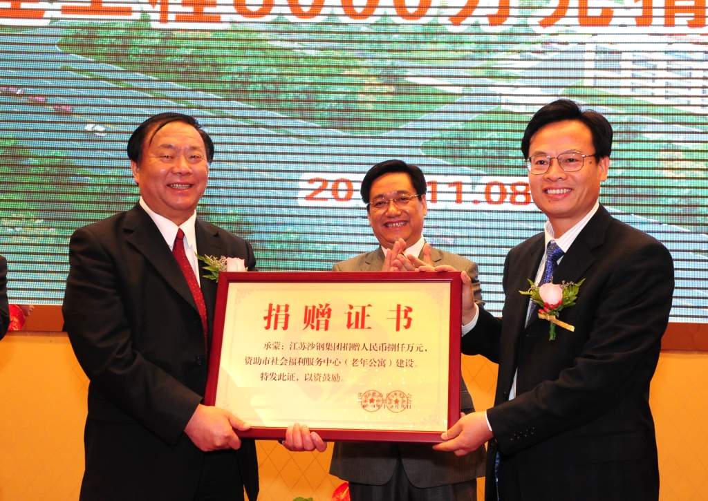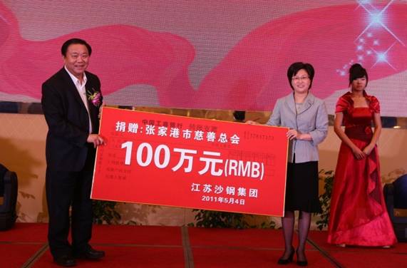 四是參與公益事業(yè),造福當(dāng)?shù)厣鐣?huì)。2011年9月,沙鋼集團(tuán)公司向張家港市社會(huì)福利服務(wù)中心捐贈(zèng)建設(shè)資金8000萬元;2011年5月,向張家港市慈善總 會(huì)捐款100萬元,用于關(guān)愛全市困難職工和外來務(wù)工人員。2011年7月,為支持全國殘疾人職業(yè)技能競賽召開,向全國殘聯(lián)捐贈(zèng)200萬元,購置10輛殘疾無障礙專用車。2010年,向張家港市非公黨建聯(lián)合發(fā)展基金會(huì)捐贈(zèng)30萬元;向江蘇省未成年人美德基金會(huì)捐贈(zèng)近200萬元。2012年6月,向張家港市慈善基金會(huì)捐贈(zèng)305萬元;2013年,資助張家港百姓公益基金30萬元,幫助需要補(bǔ)助的百姓;向張家港市黨員關(guān)愛基金捐款29.8萬元,給貧困群眾送去黨組織的溫暖和關(guān)心;向張家港市錦豐鎮(zhèn)聯(lián)興村民委委員會(huì)捐贈(zèng)10萬元,用于需要補(bǔ)助的村民改善生活及生活環(huán)境。2014年,向張家港市慈善基金會(huì)捐贈(zèng)44萬元。